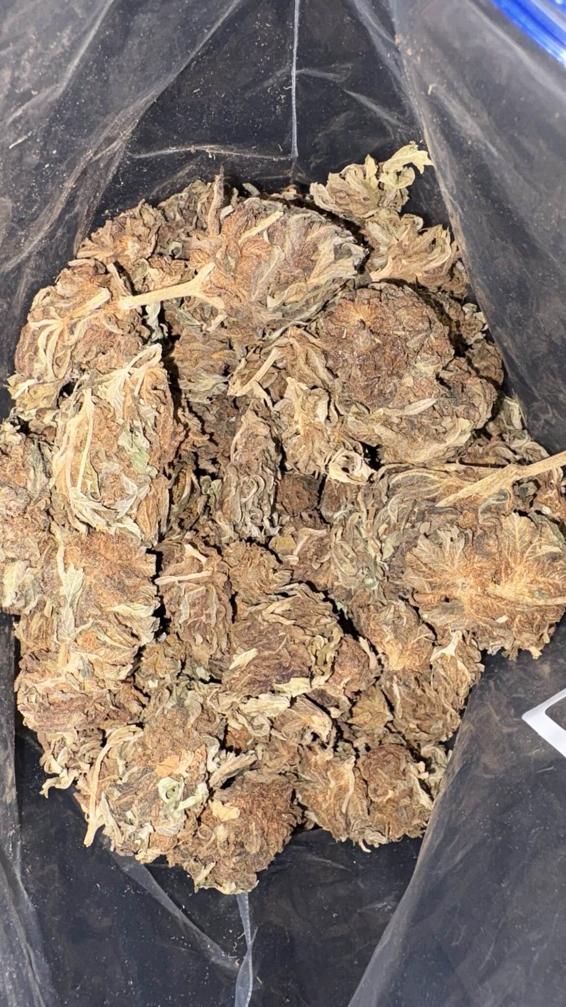 - Texture: Medium density with a frosty coating of amber crystal trichomes