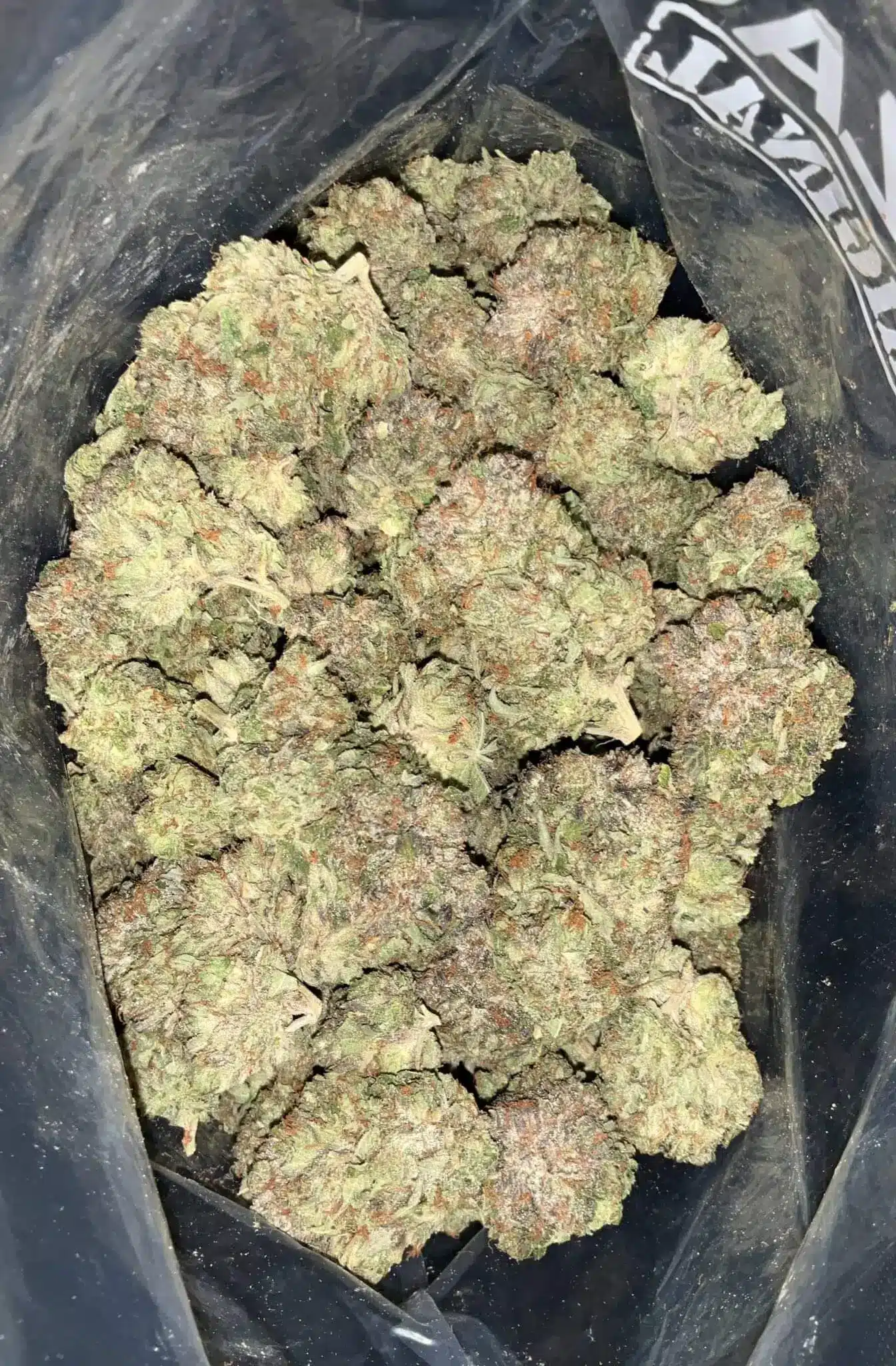 These AAA+ buds are dense, sticky, and resin-coated, showcasing forest-green tones with amber hairs and frosty trichomes. Expertly trimmed and cured, SFV OG maintains exceptional freshness and potency.