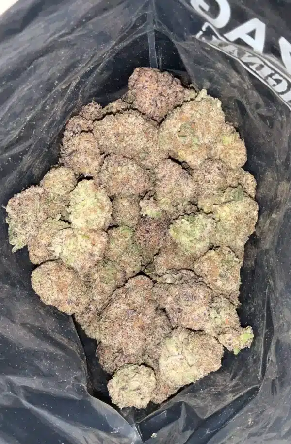AAA+ Wedding Crasher. This balanced hybrid blends Wedding Cake and Purple Punch, delivering a sweet vanilla-grape aroma, smooth smoke, and energizing euphoria. With 22–25% THC, it offers a perfect daytime high that enhances focus, creativity, and mood without the couch-lock.