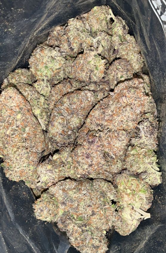 - Texture: Dense, sticky nugs coated in frosty white trichomes.