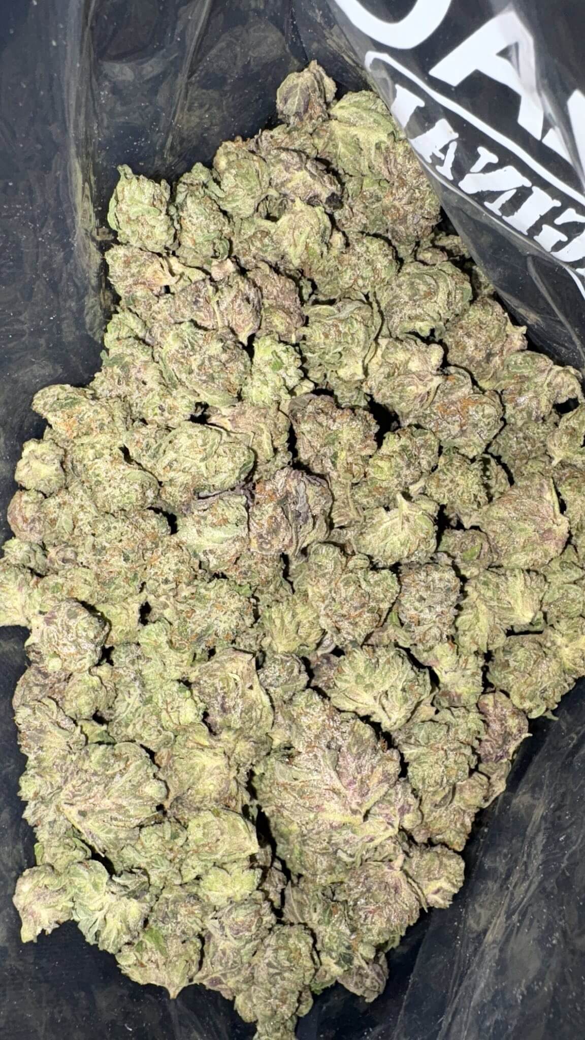 - Colour: Small, rounded forest green nugs with amber hairs and a frosty layer of amber-tinted trichomes.
