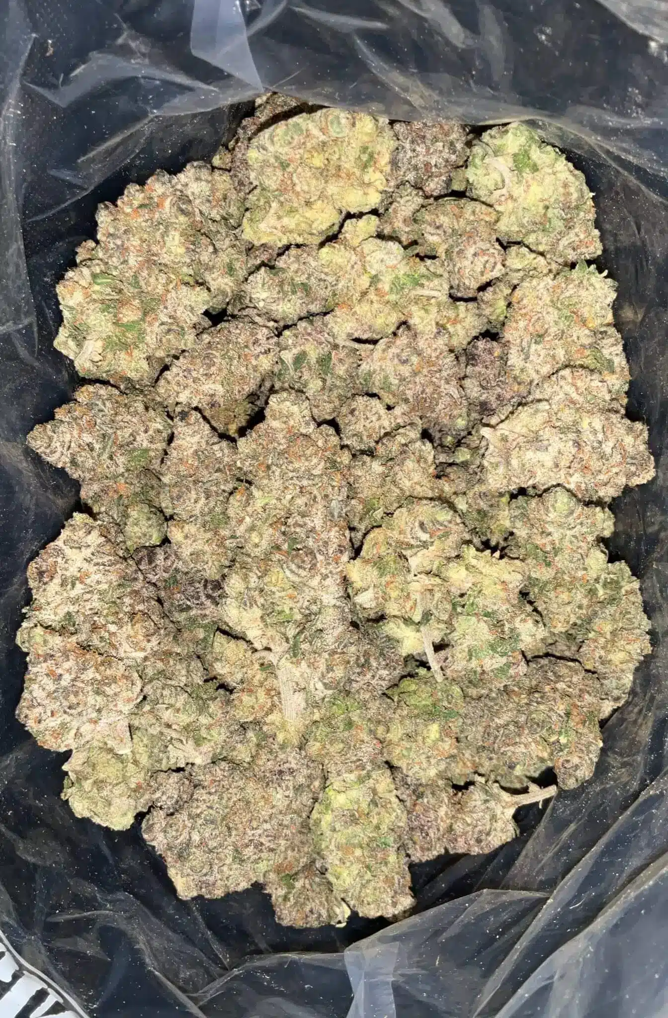These AAAA+ buds are dense and frosty, with thick trichome coverage that gives them a sugary, sparkling look. Their green and purple hues combined with orange pistils highlight the strain’s craft-grown quality.