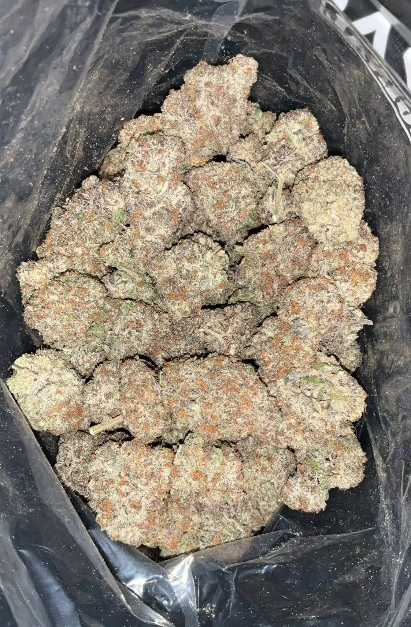 AAAA Mendocino Purps features deep green and purple buds flecked with orange hairs and frosted trichomes. Its dense, resin-coated structure highlights true AAAA craft quality.