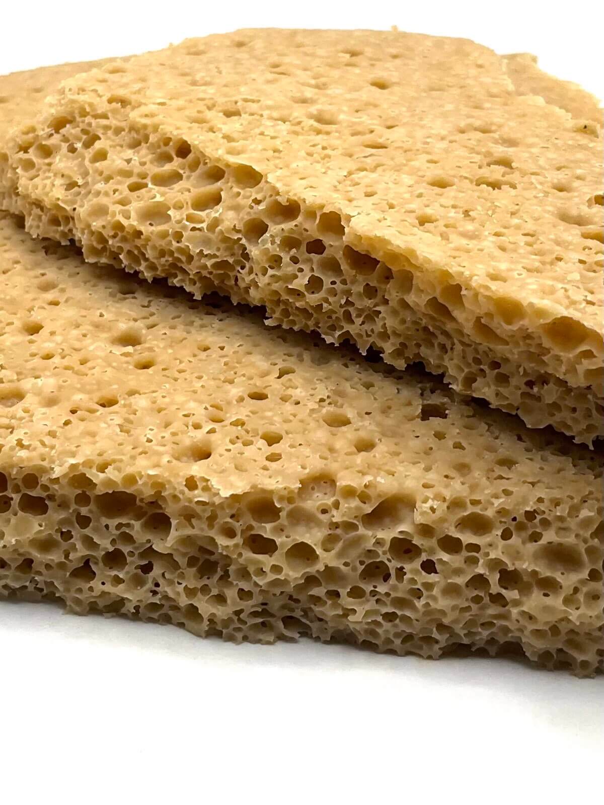 - Color: Golden amber with a crystalline, crumbly texture.