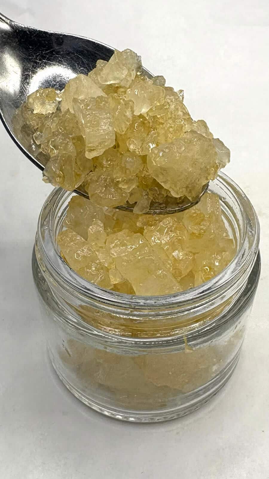 - Colour: Brilliant golden terp sauce surrounding shimmering cannabinoid-rich diamonds.