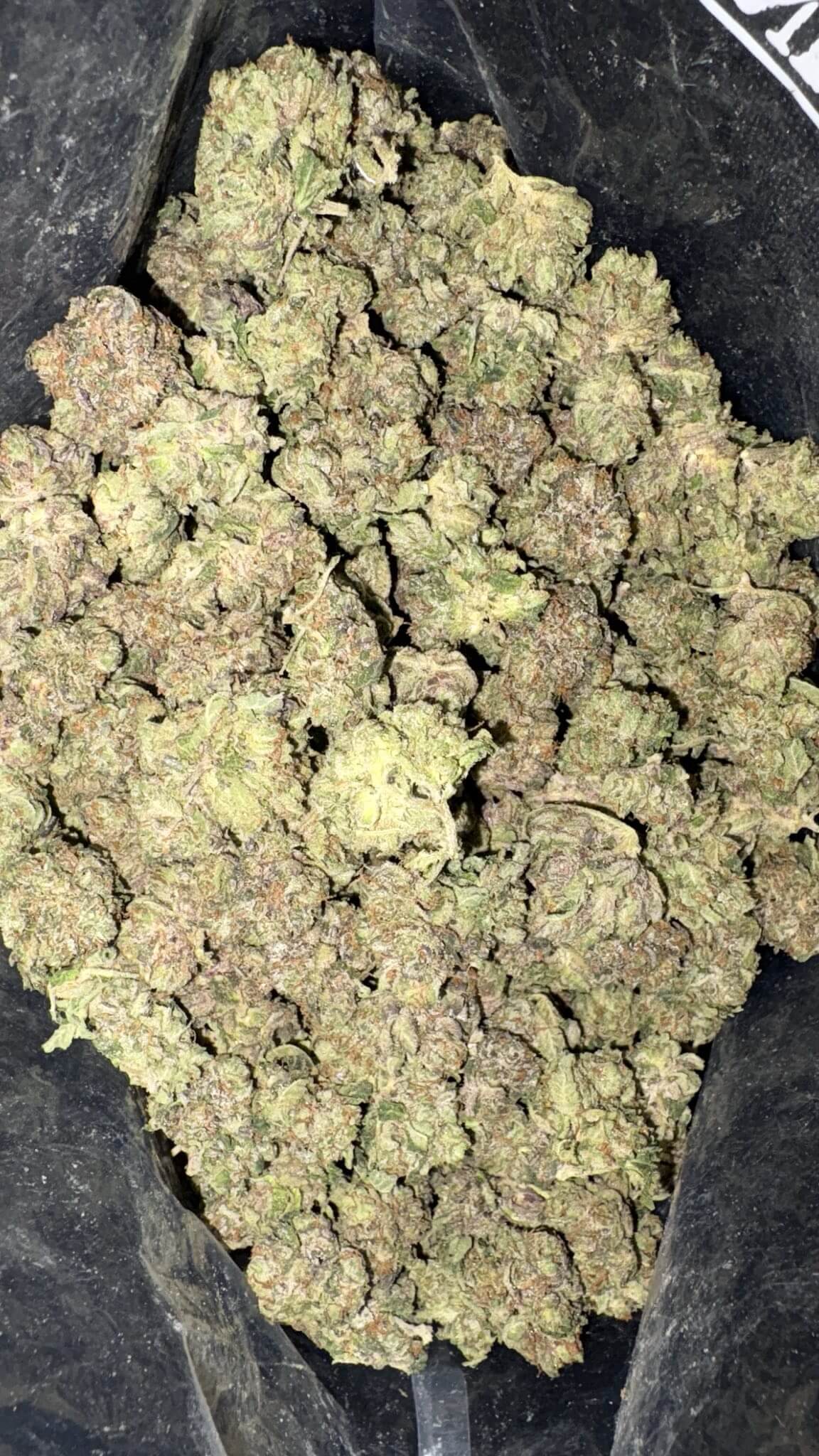 - Texture: Dense, sticky, and resin-rich — a true “greasy” indica.